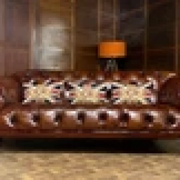F50-070925/C- TETRAD DRUMMOND GRAND JOHN LEWIS ANTIQUE TAN BROWN LEATHER CHESTERFIELD SOFA
