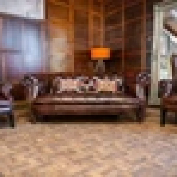 F50-070525/A – TETRAD OSKAR CHESTERFIELD CONKER LEATHER MIDI SOFA PAIR of WING CHAIRS & STOOL