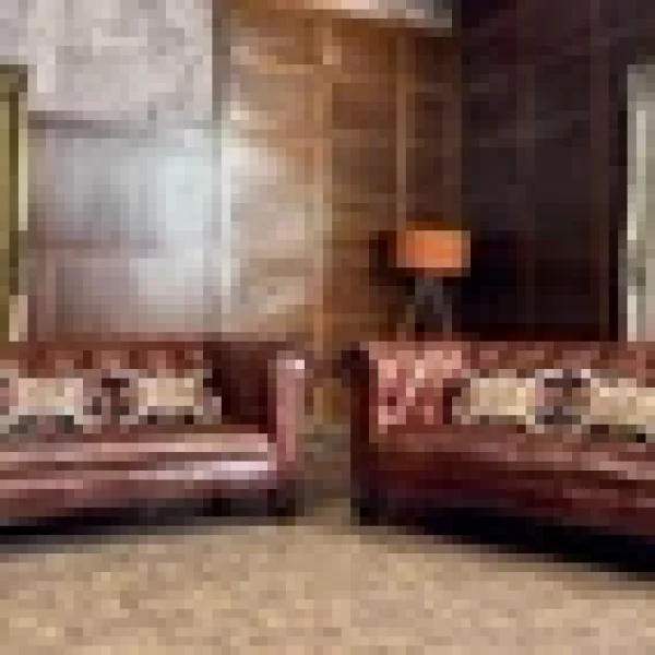 F50-251125/A- VICTORIAN STYLE ANTIQUE CHESTNUT TAN LEATHER 3 & 2 SEATER CHESTERFIELD SOFAS