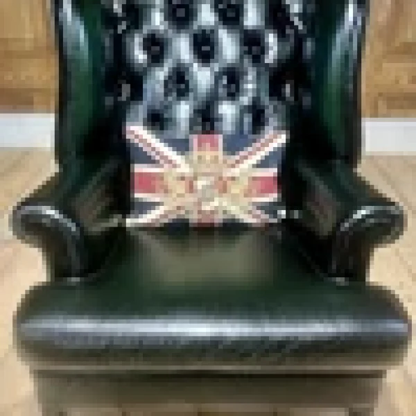 F50-040825 – TETRAD FADED GLORY JOHN LEWIS ANTIQUE GREEN LEATHER CHESTERFIELD LIBRARY CHAIR