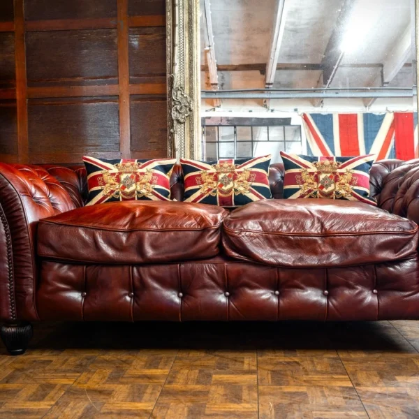 F50-240724/A- TETRAD OSKAR CHESTNUT LEATHER CHESTERFIELD LARGE SOFA CLUB & WING CHAIRS STOOL
