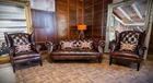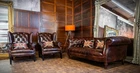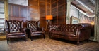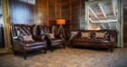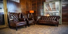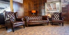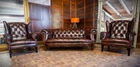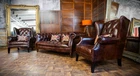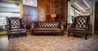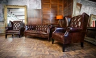 TETRAD PALACE ANTIQUE BROWN LEATHER CHESTERFIELD MIDI SOFA PAIR of WING CHAIRS