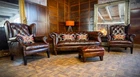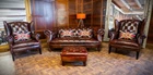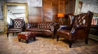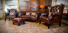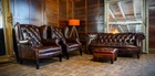 TETRAD PALACE ANTIQUE BROWN LEATHER CHESTERFIELD MIDI SOFA PAIR of CHAIRS STOOL