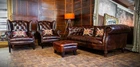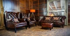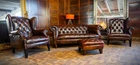 F50-180326A – TETRAD PALACE ANTIQUE BROWN LEATHER CHESTERFIELD MIDI SOFA PAIR of CHAIRS STOOL