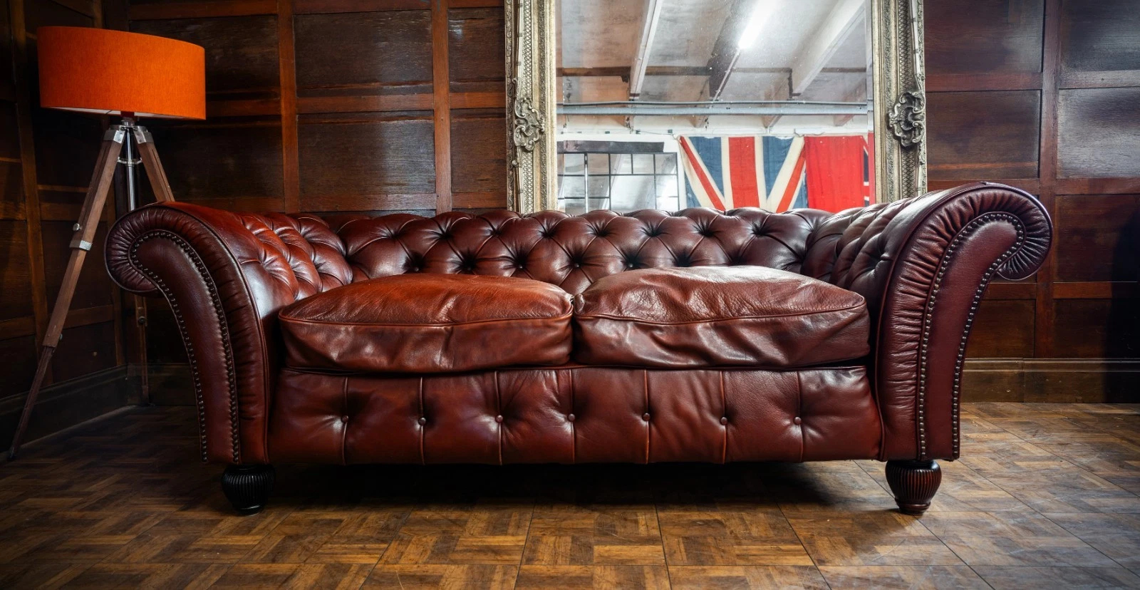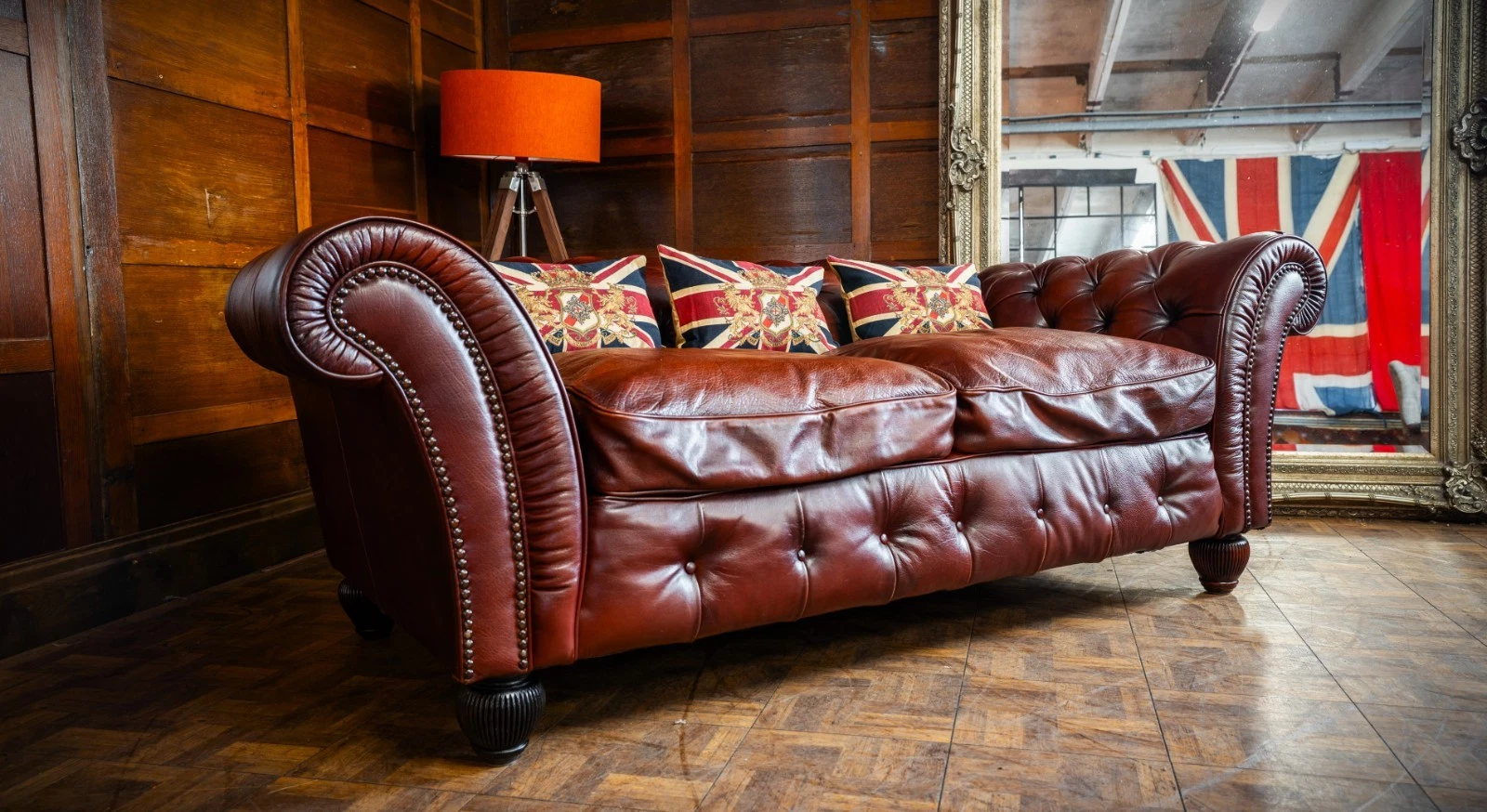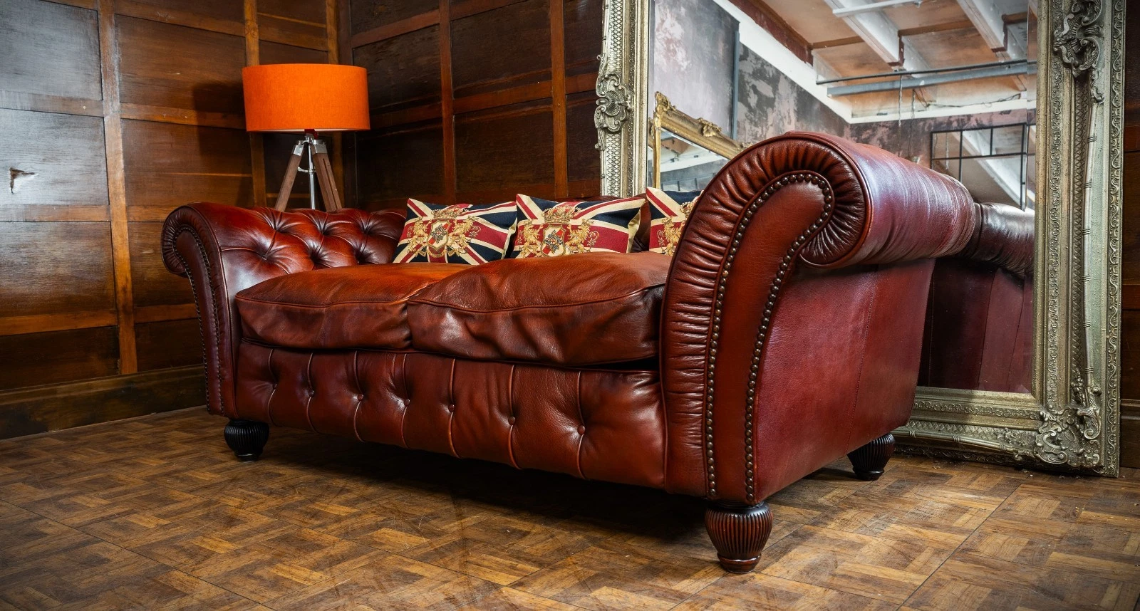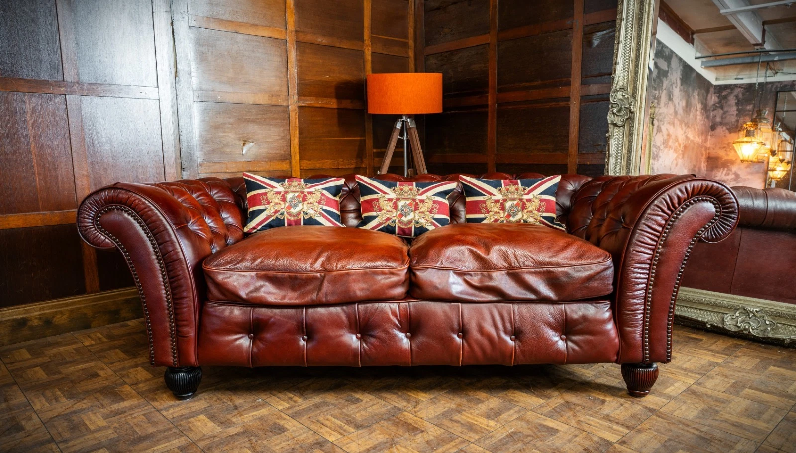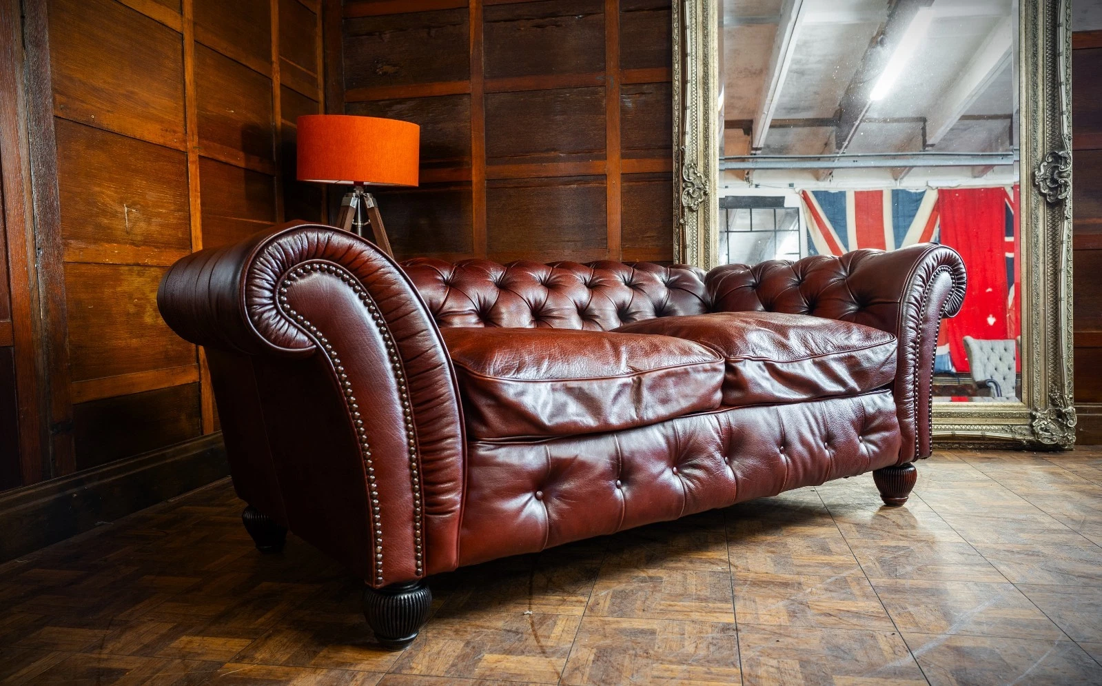 F50-221125/G -TETRAD ELLIOT ANTIQUE CHESTNUT LEATHER CHESTERFIELD 3 SEATER SOFA ONE of a PAIR (Copy)