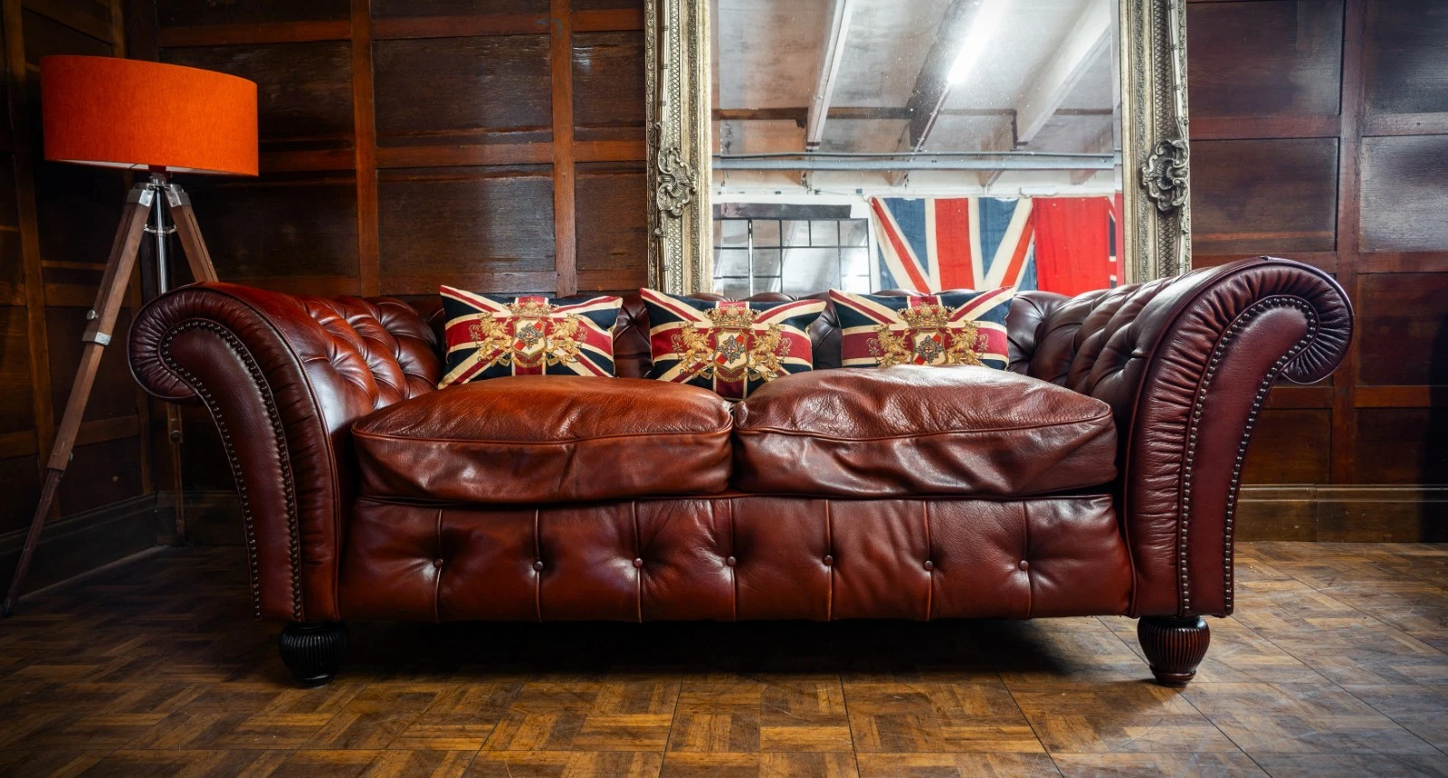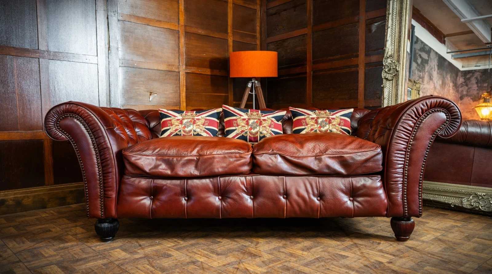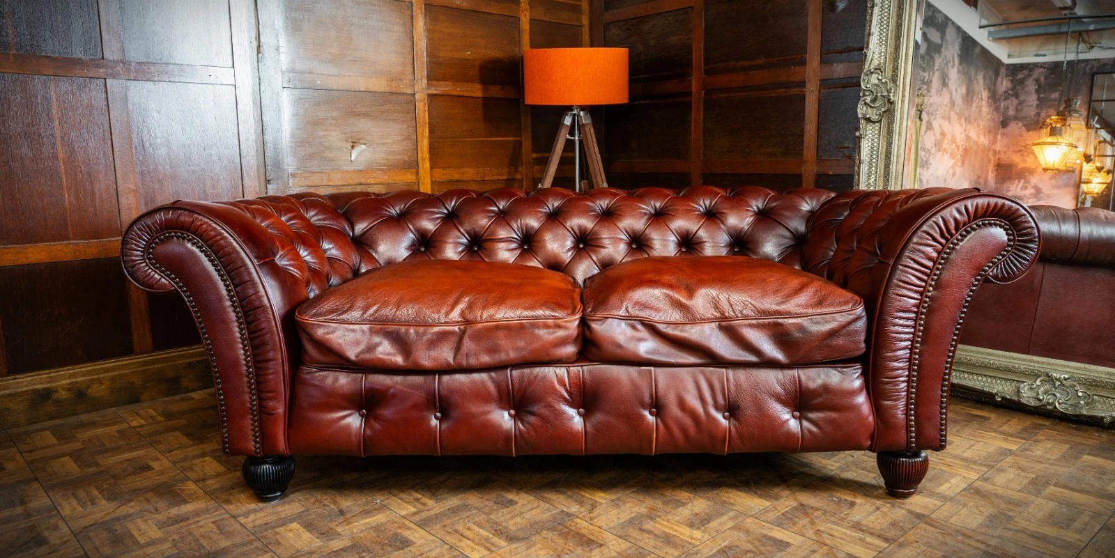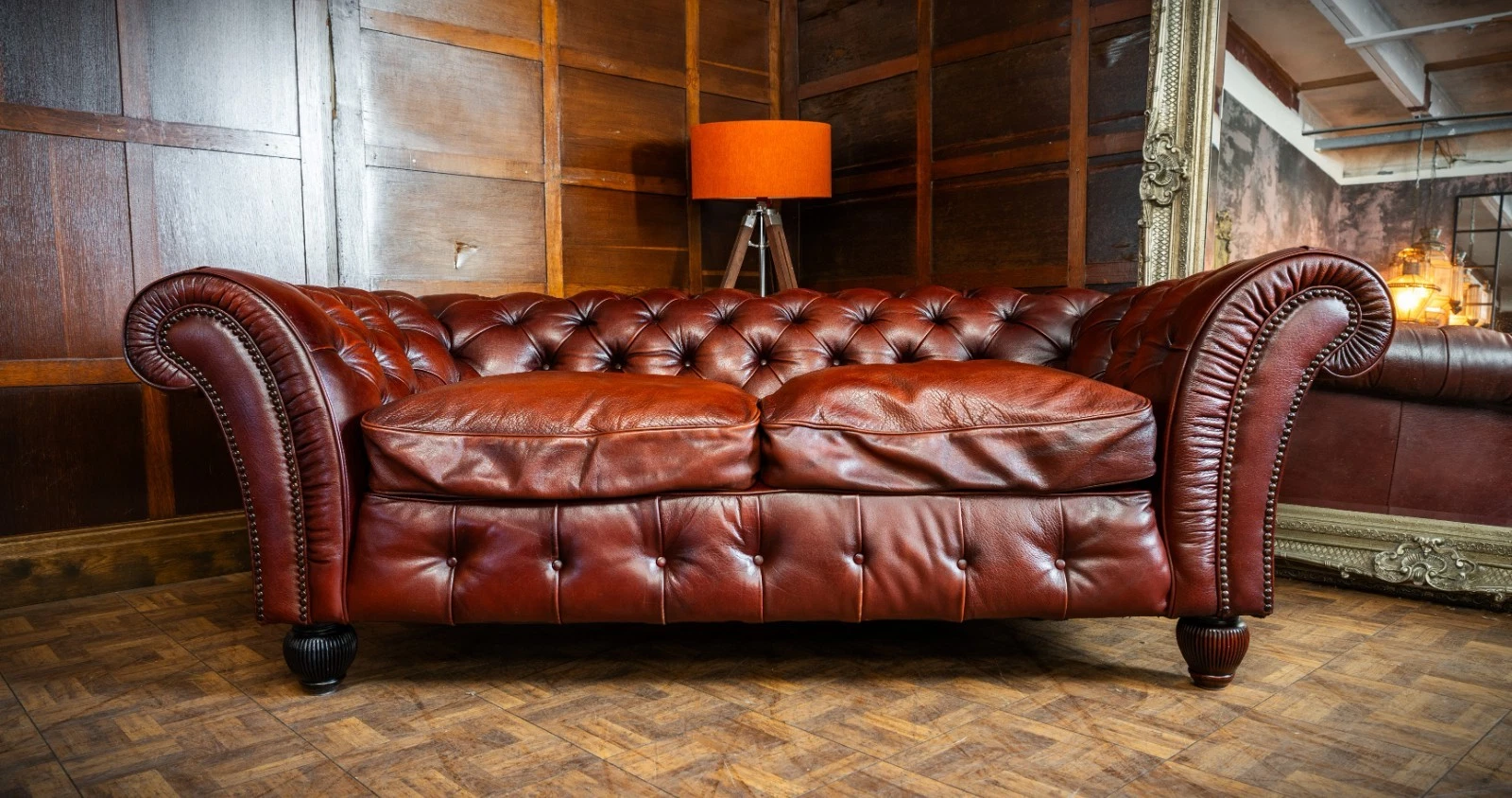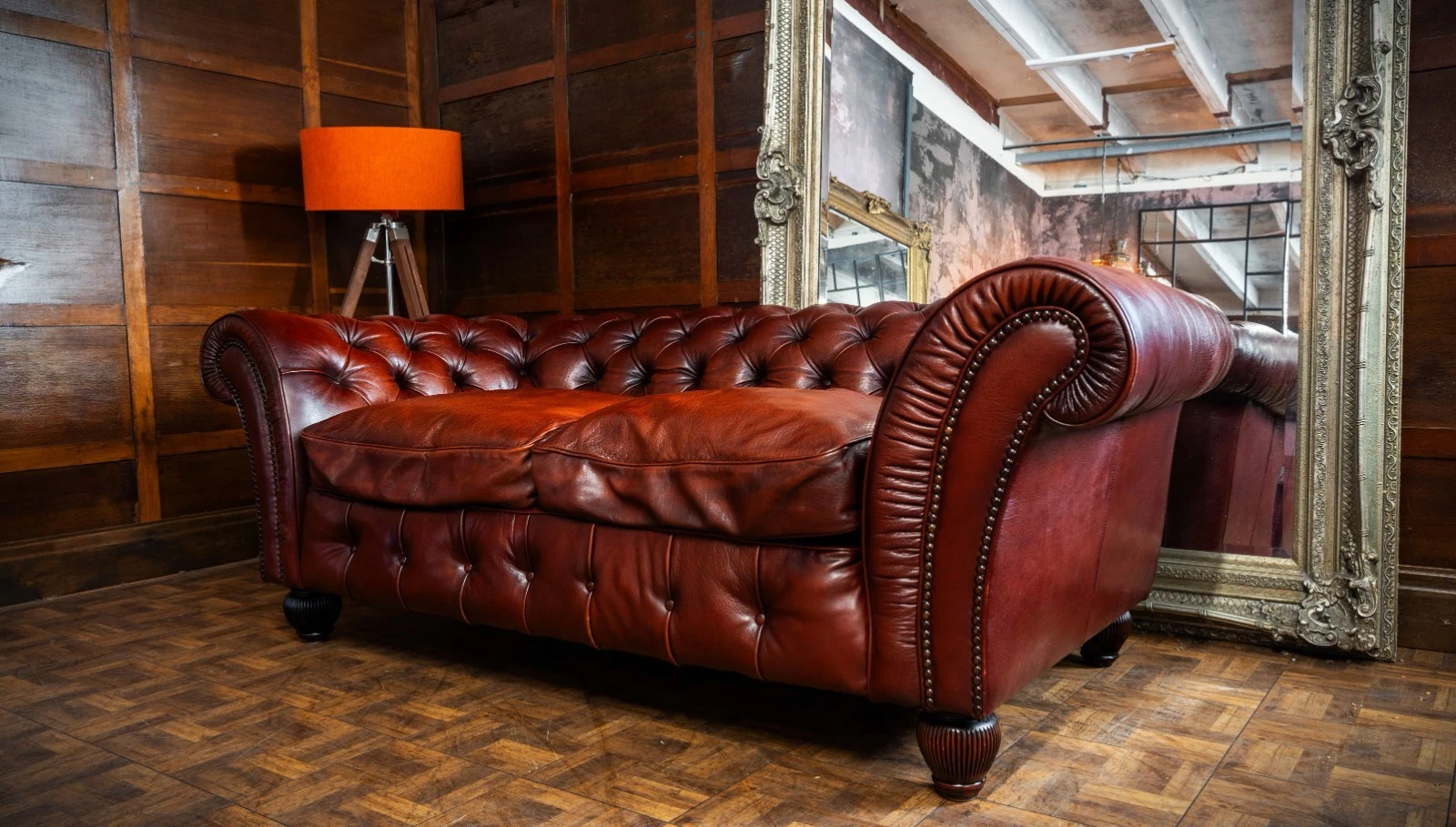 F50-221125/G -TETRAD ELLIOT ANTIQUE CHESTNUT LEATHER CHESTERFIELD 3 SEATER SOFA ONE of a PAIR (Copy)